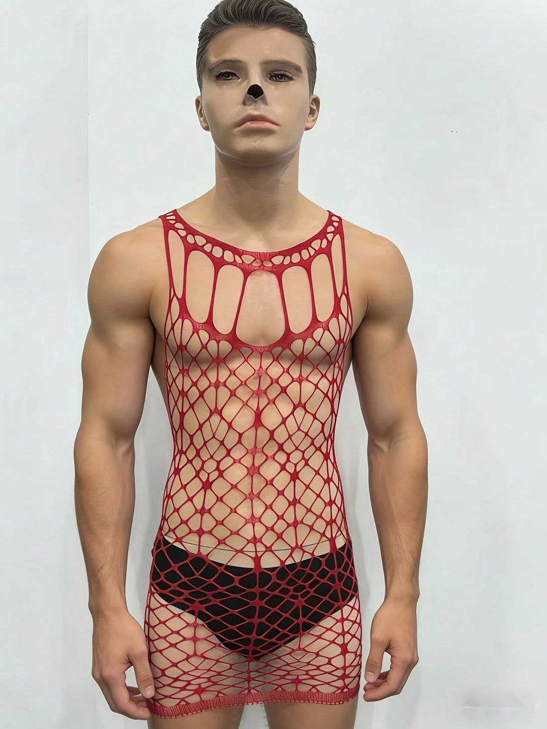 Hollow See Through Fishnet Bodystocking For Men