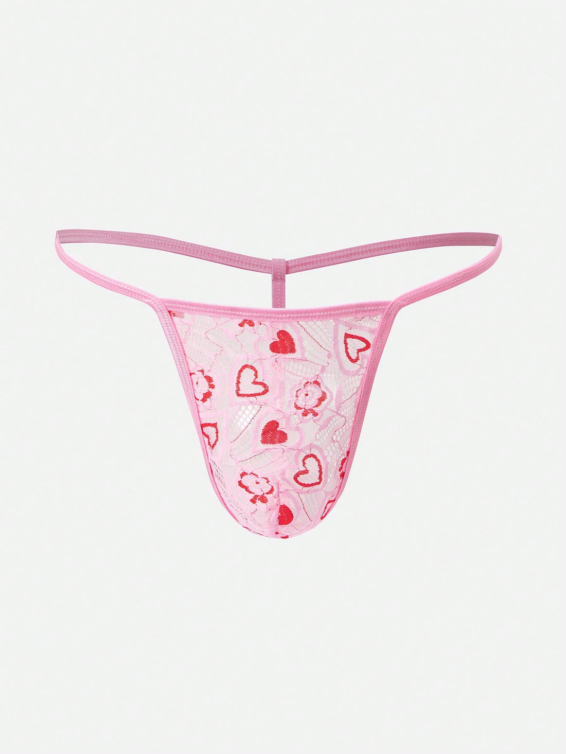 Men’s Heart Print Short With Soft Edge Trim Detail For Daily Styling