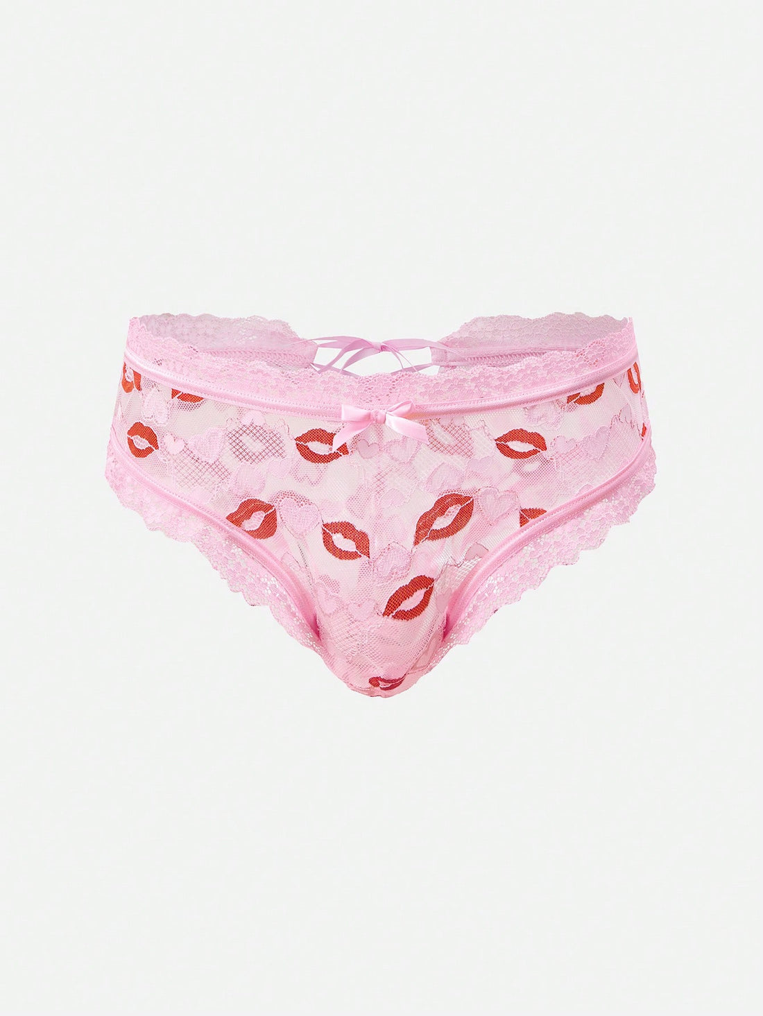 Men’s Red Print Short With Lip And Heart Pattern For Everyday Styling