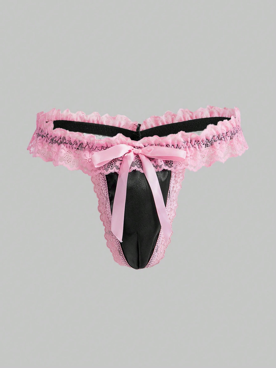 Lace Patchwork Cheeky Thong Lingerie For Men