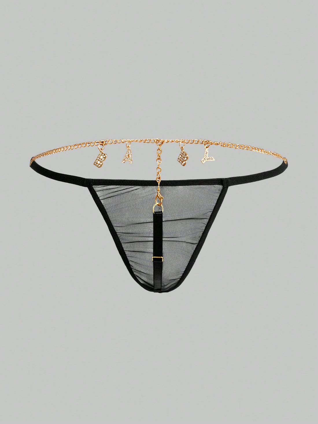 Rhinestone Heart Chain Linked Thong Underwear For Men