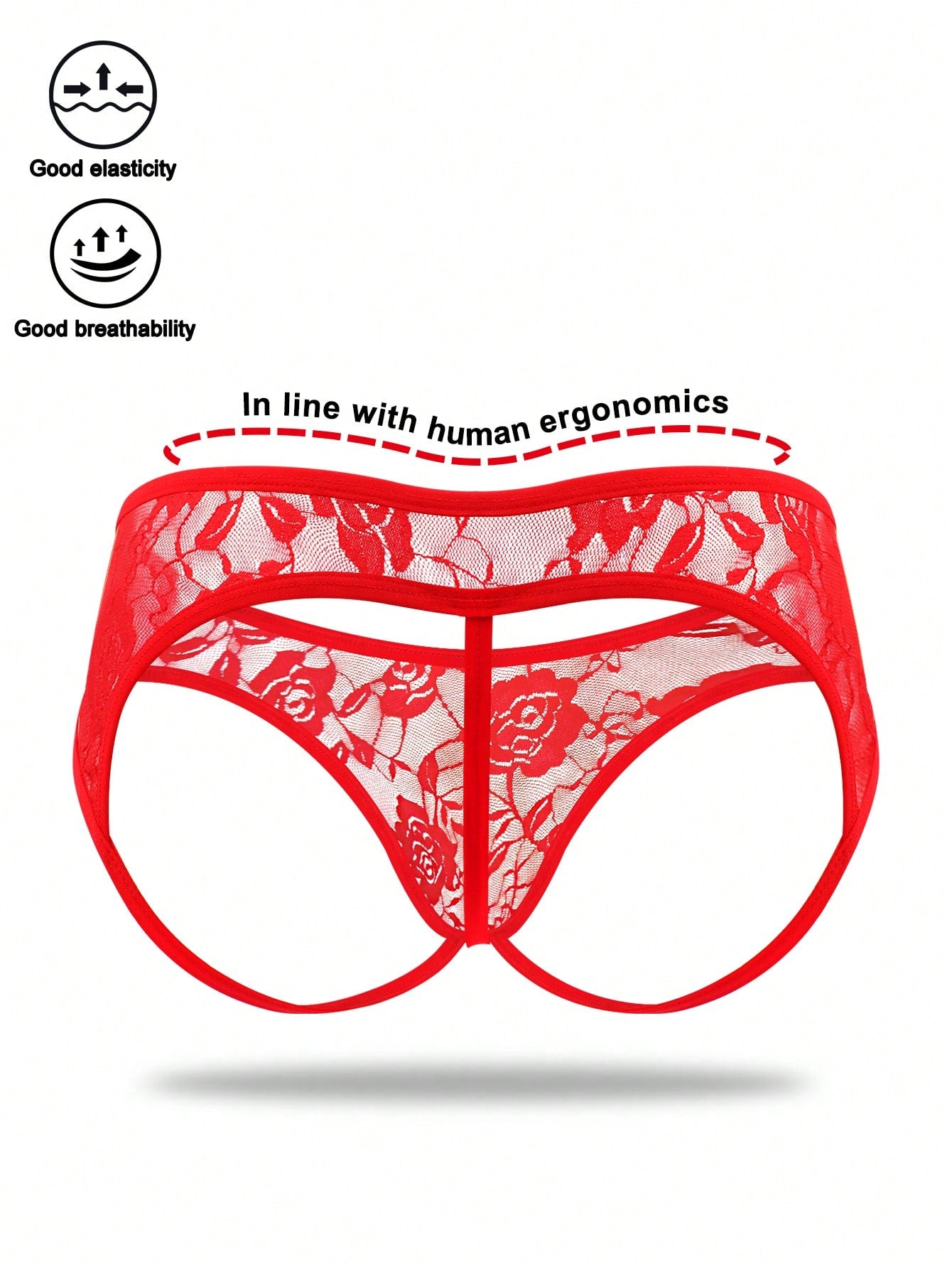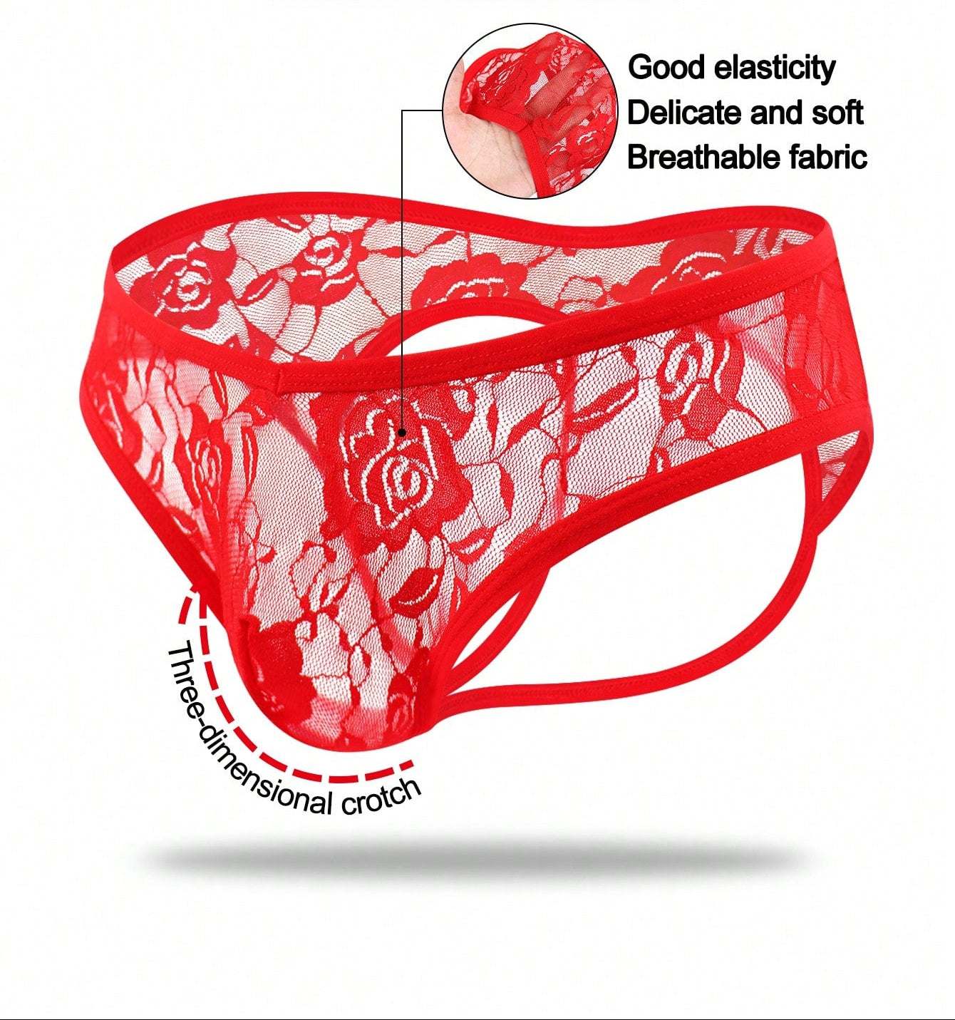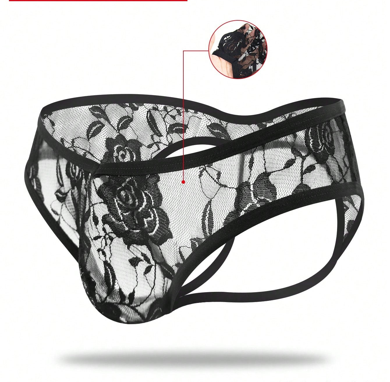 1pc Men’s Short with Black Rose Lace Trim Detail, Lightweight Material, Clean Design