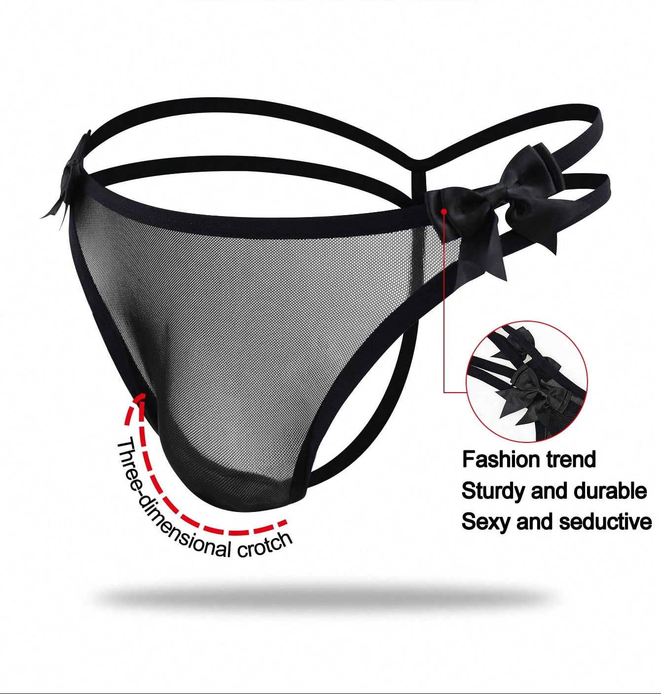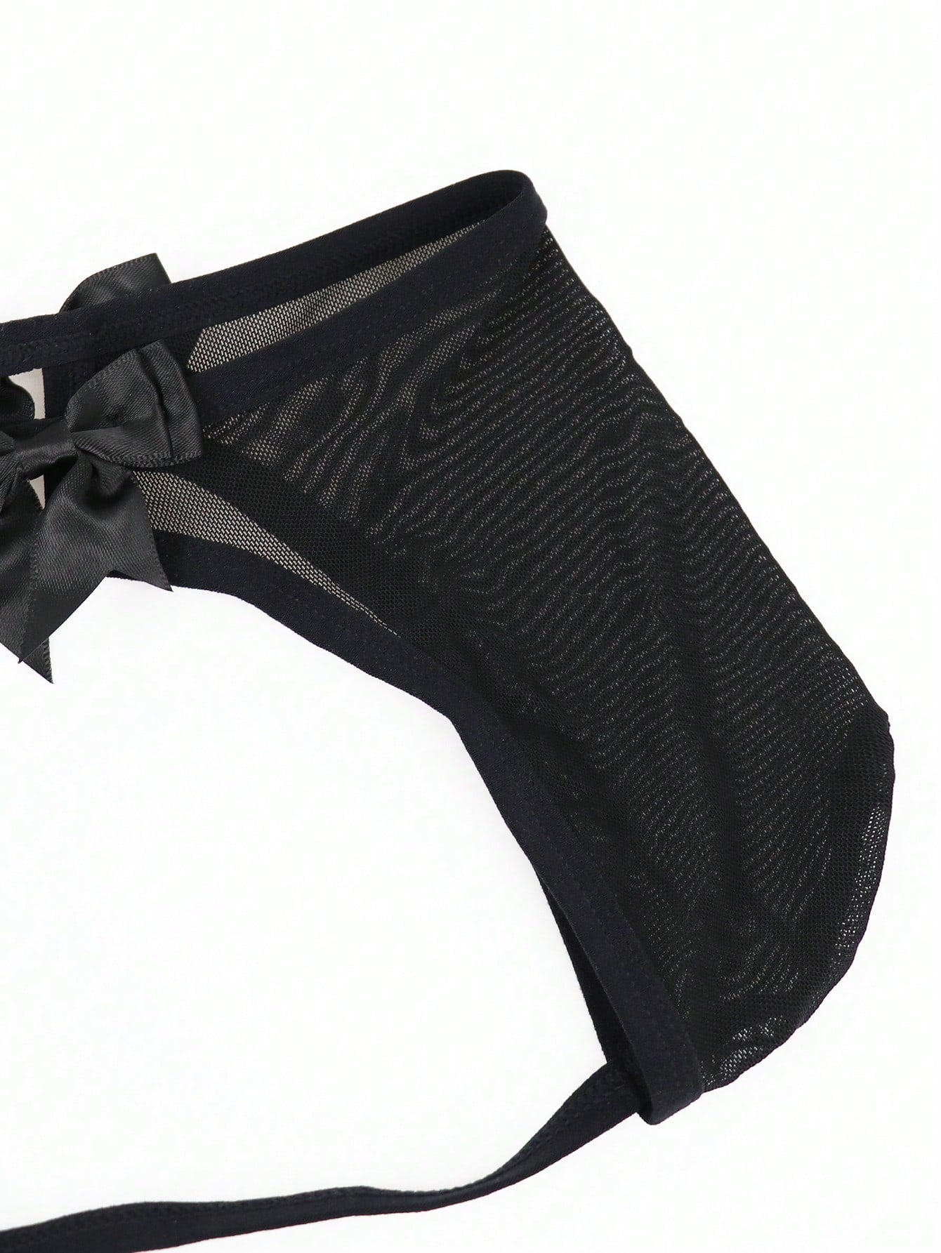 1pc Men’s Black Mesh Fabric Short With Bow Detail, Pattern Design, For Everyday Use
