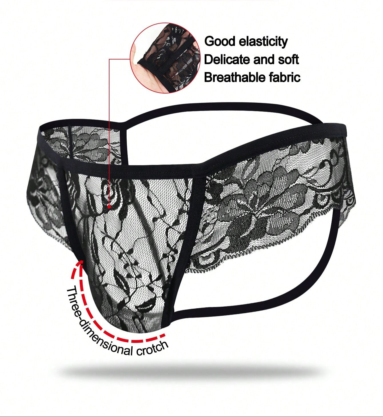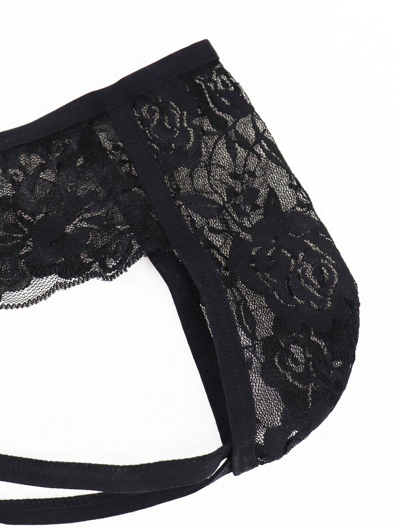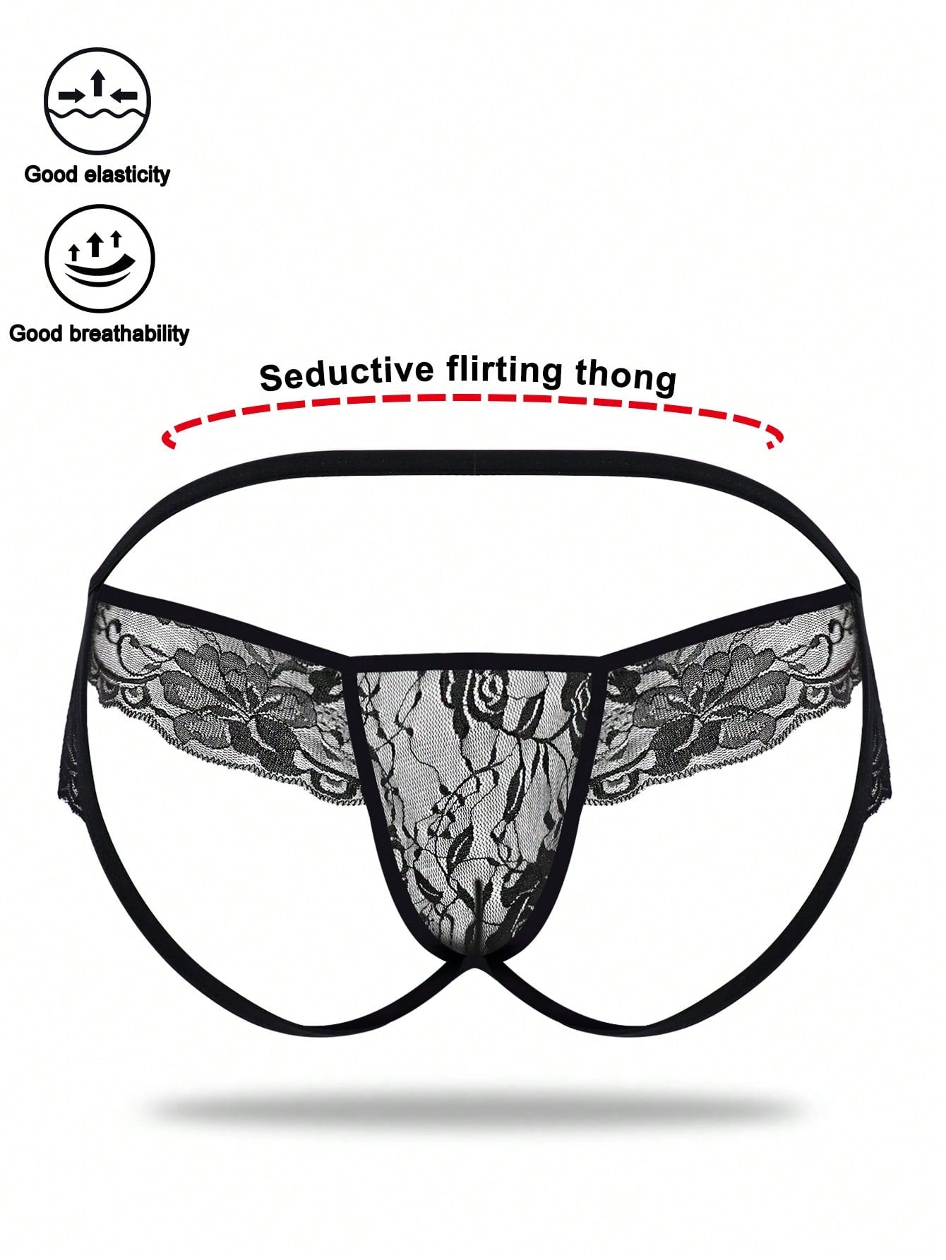 1pc Men’s Rose Lace Short, Lightweight Fabric, Simple Structure, Comfortable Fit
