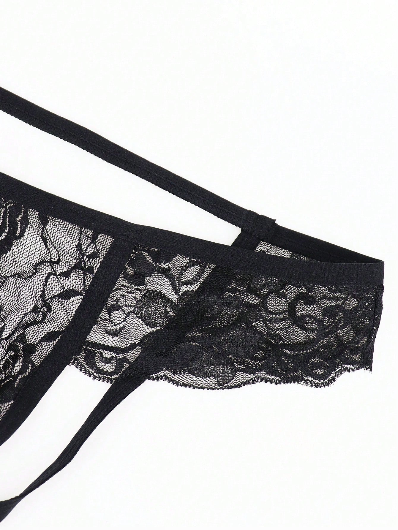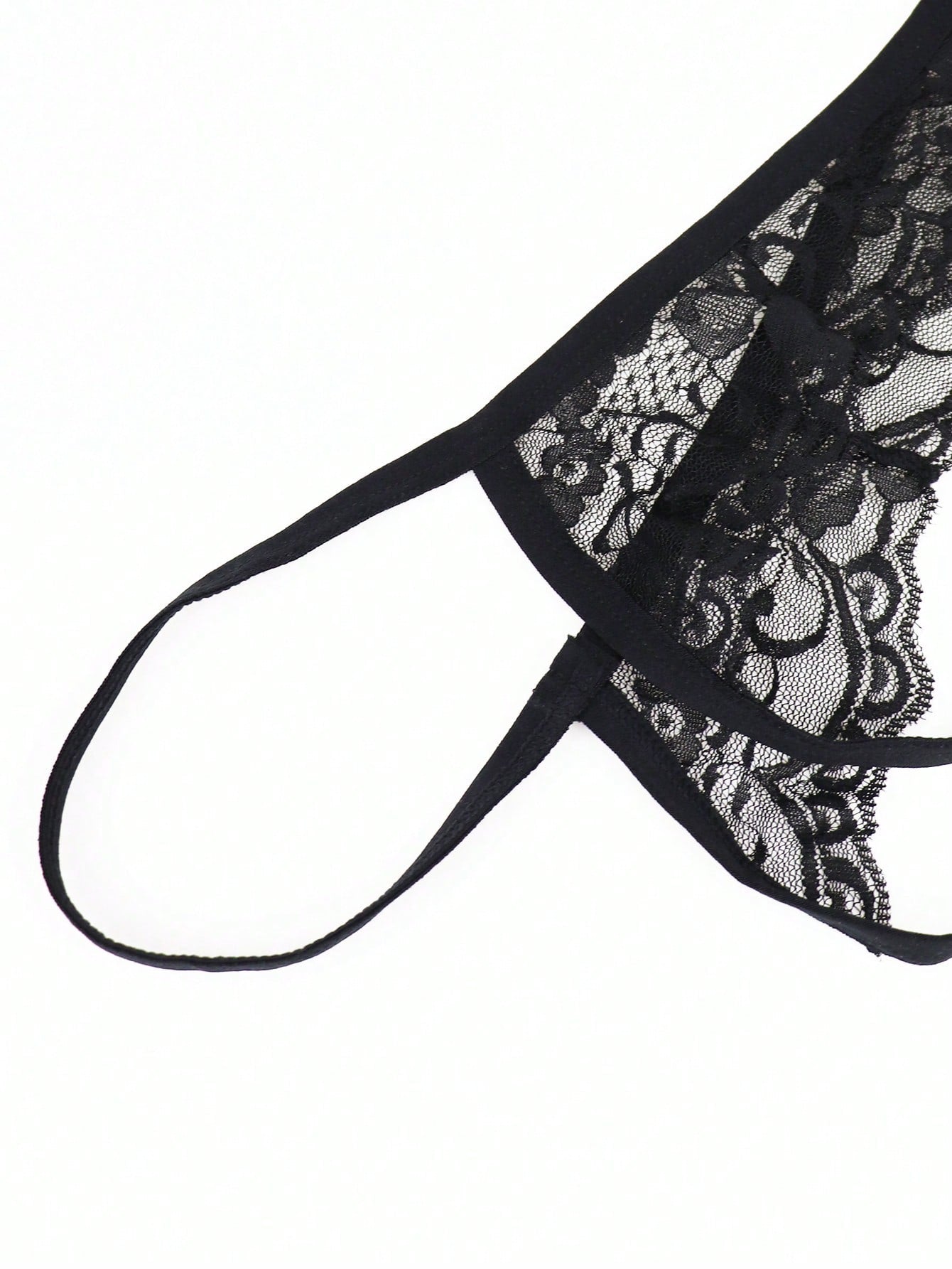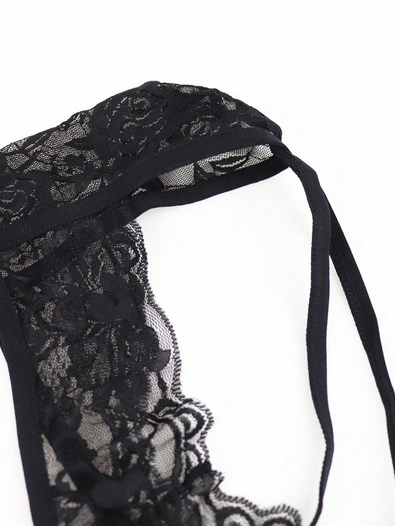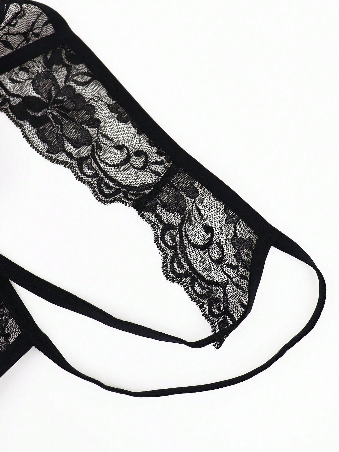 1pc Men’s Rose Lace Short, Lightweight Fabric, Simple Structure, Comfortable Fit