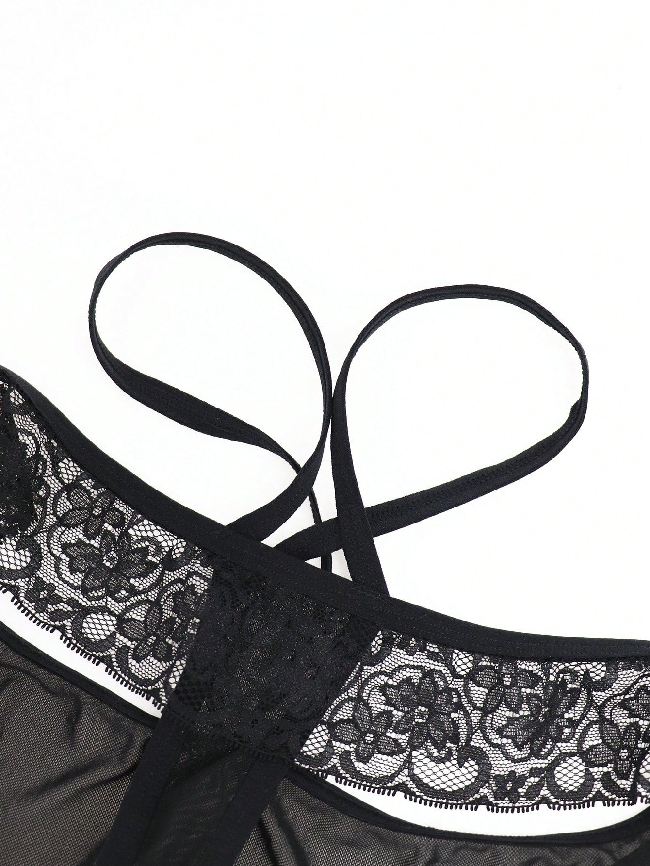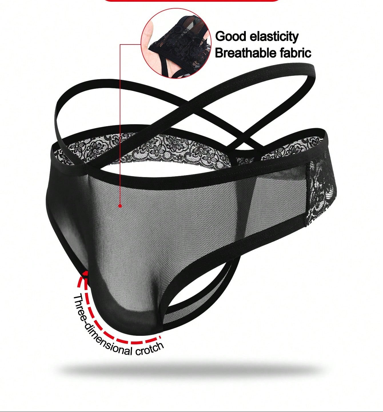 Men’s Black Mesh Short with Lace Waist Trim, Lightweight Fabric, Simple Design