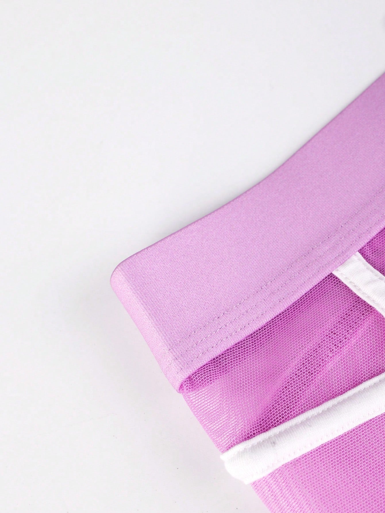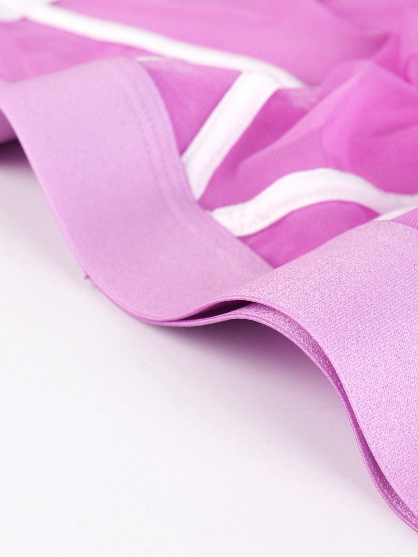 Men’s Color Block Mesh Texture Short With Contrast Trim For Daily Wear