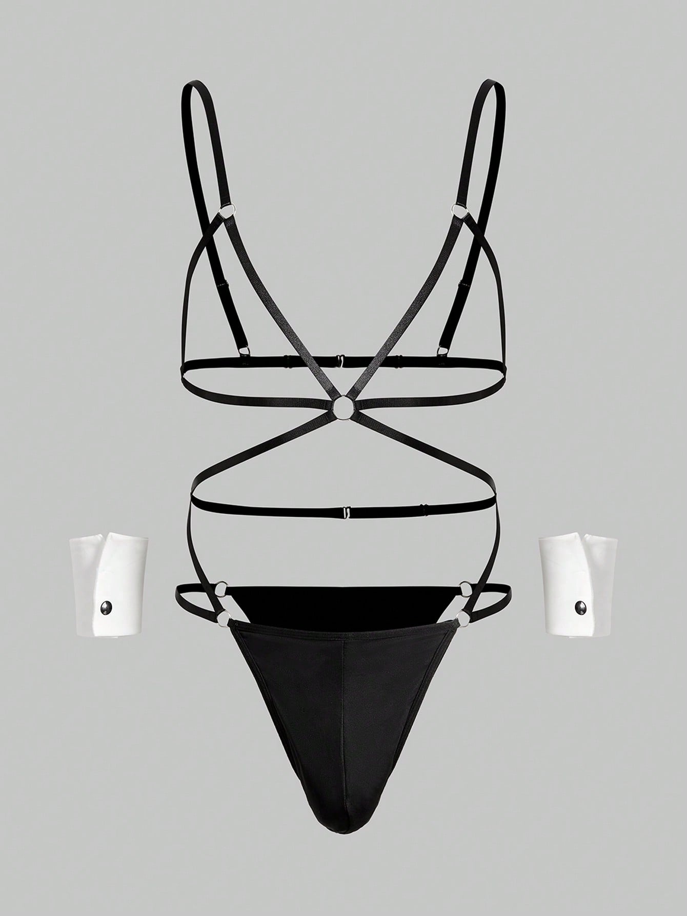 Men’s Costume-Style Set Including Short And Arm Sleeves, Heart Pattern Design, For General Wear