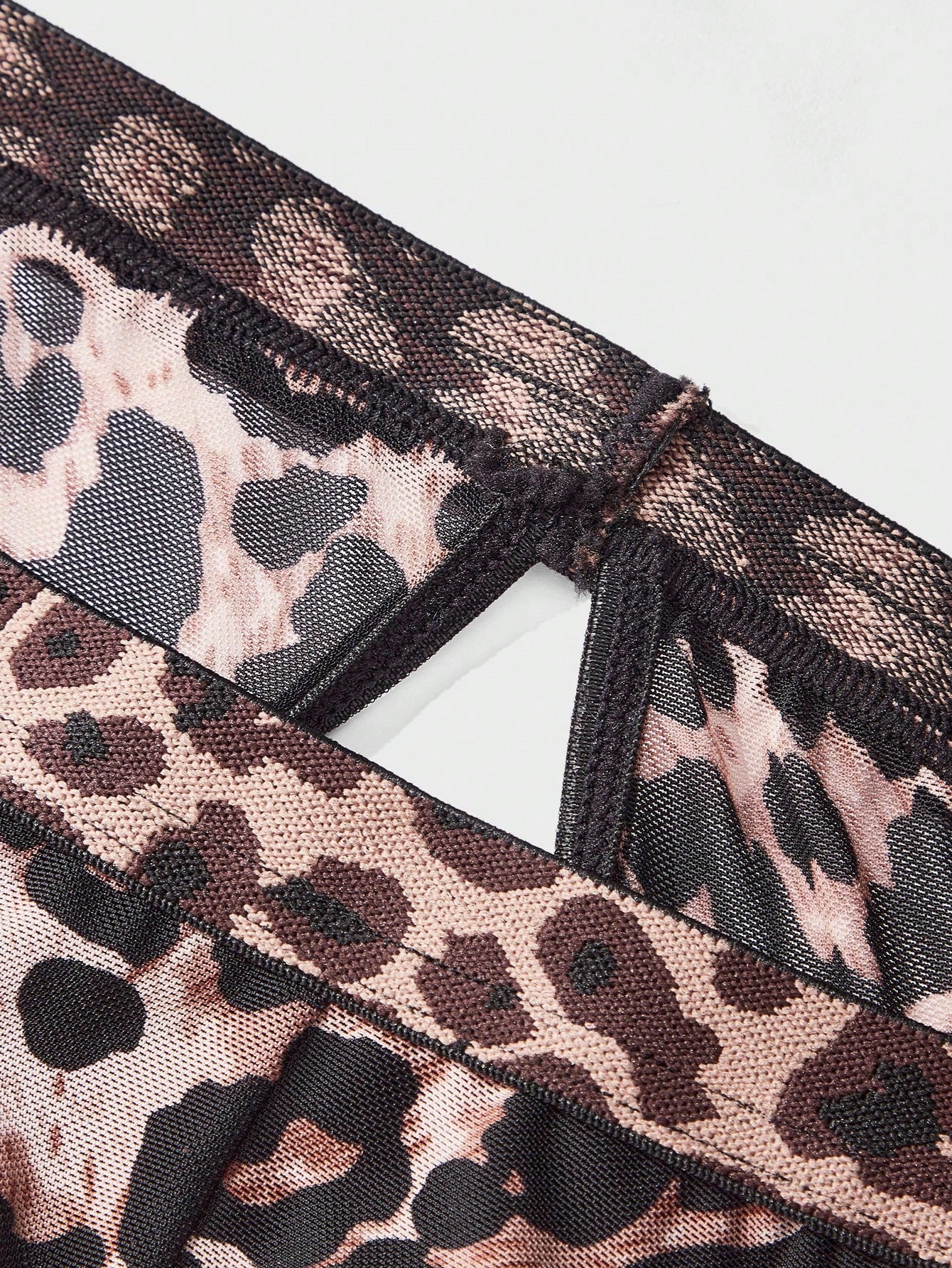 Men’s Leopard Pattern Mesh Patchwork Short Neutral Design For Casual Styling