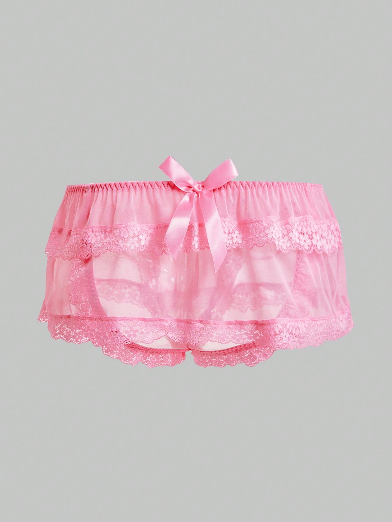 Men’s Mesh Fabric Short With Bow Detail, Heart Pattern Design, For Daily Wear