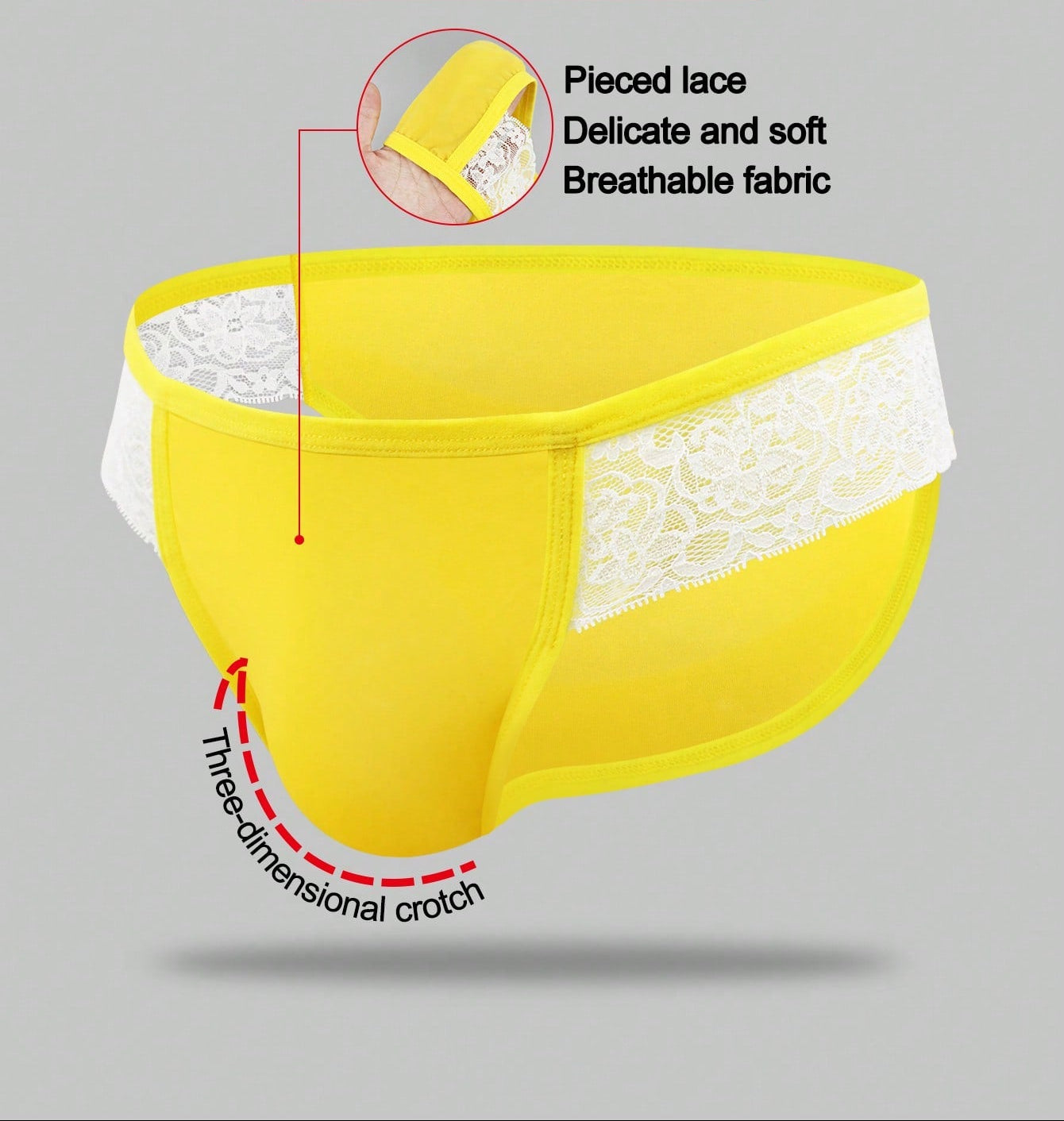 Men’s Yellow Fabric Short with Lace Waist Detail, Lightweight Material, Clean Design, Casual Style